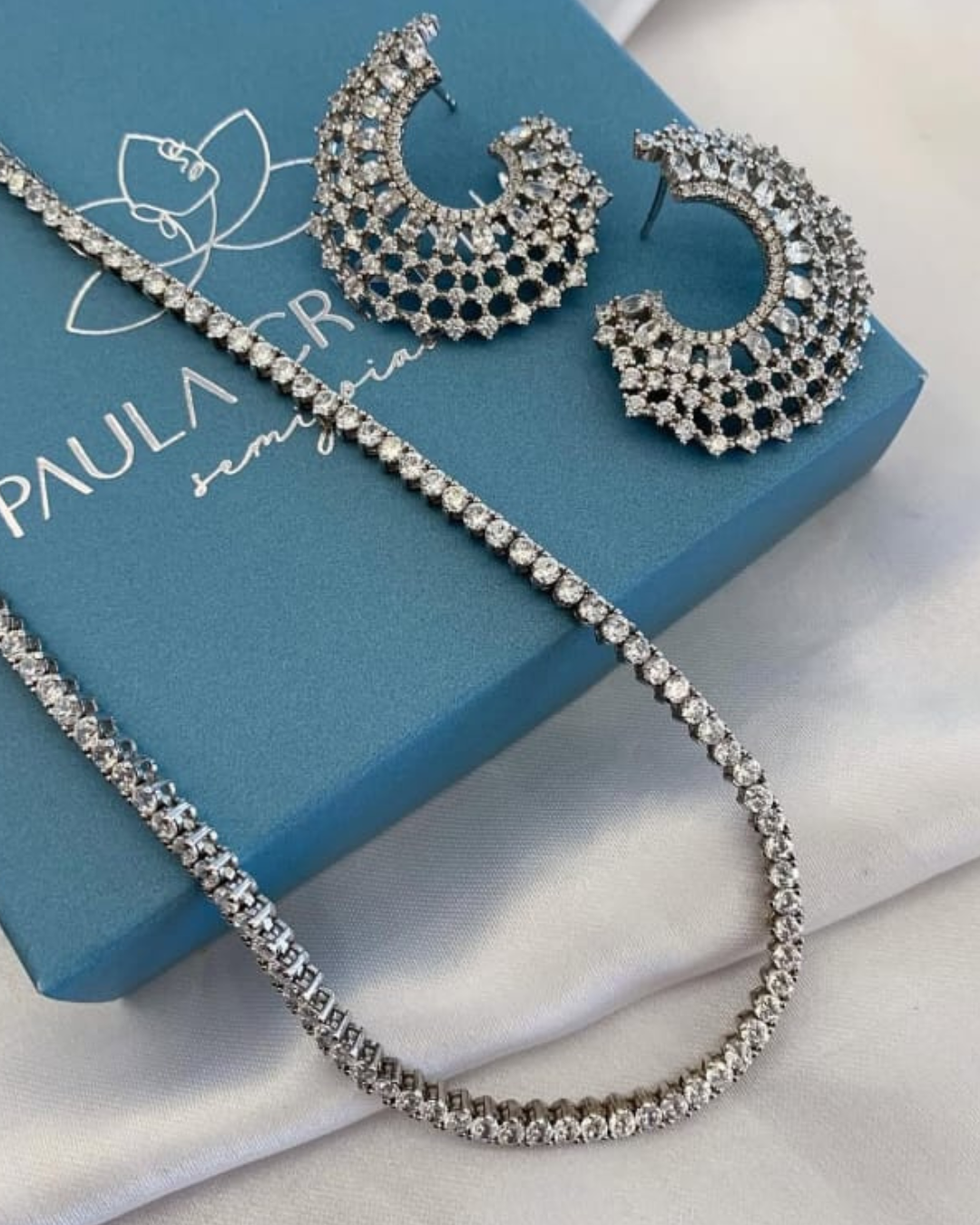 1 avaliação para Conjunto deslumbrante com colar riviera e brincos em design vazado